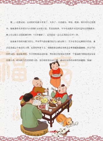 第三,適量運動,運動的好處就不多說了,太多了,不過建議,中飯,晚飯,飯后可以適量散